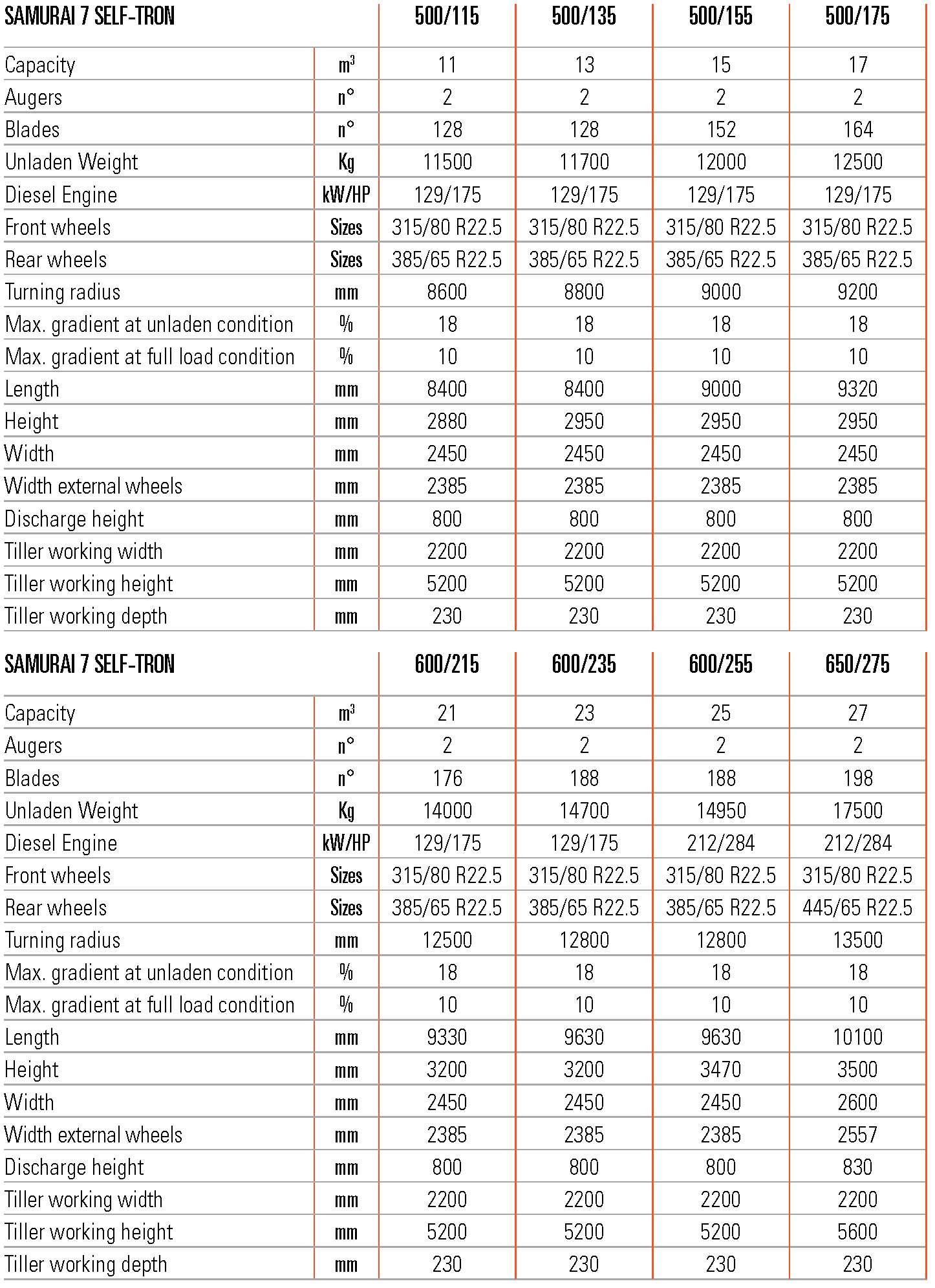 - N° 2 high strength steel chopping-mixing augers, 2 rotation speeds